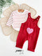 Big Hearts Punch Embroidered Velvet Overall & Bodysuit Set - Black