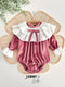 Briella Layered Ruffle-Collar Bow Soft Shiny Velvet Romper – PUDRA (Dusty Pink)