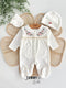 • 2-piece set: embroidered romper + matching hat